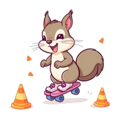 Capture the thrill of speed with this funny squirrel poster! The roller-skating squirrel weaving around cones adds a burst of energy and humor to your space.